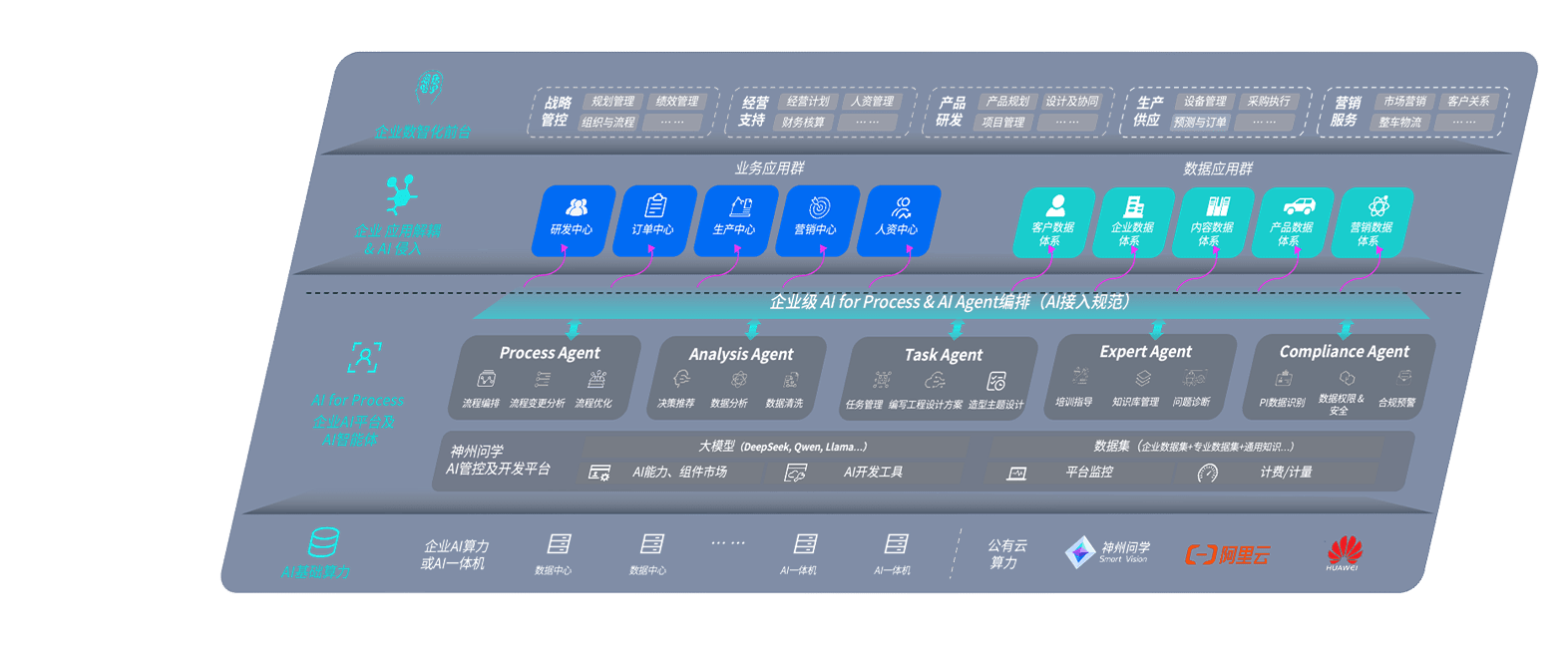 J9娱乐问学智车解决方案是一套基于AI技术的汽车行业智能化系统,,覆盖从底层算力到顶层AI应用的全栈方案。。。。方案由算力层、、、模型层和应用层组成:算力层,,方案支持多种一体机配置,,,具备云端灵活部署、、、多云适配以及动态优化计算资源的能力;模型层,,,,J9娱乐问学平台版提供了企业级AI应用一站式构建与管理平台,,,支持基于后训练强化技术的汽车企业专属模型的训练、、评测和运营;应用层,,,J9娱乐问学DeepSeek版提供包括超级员工、、、智能招采、、、智能营销、、、、智能客服、、、、AI for BI等一系列解决方案,,,可助力汽车行业实现数字化转型,,,让管理更智能、、、、响应更敏捷。。